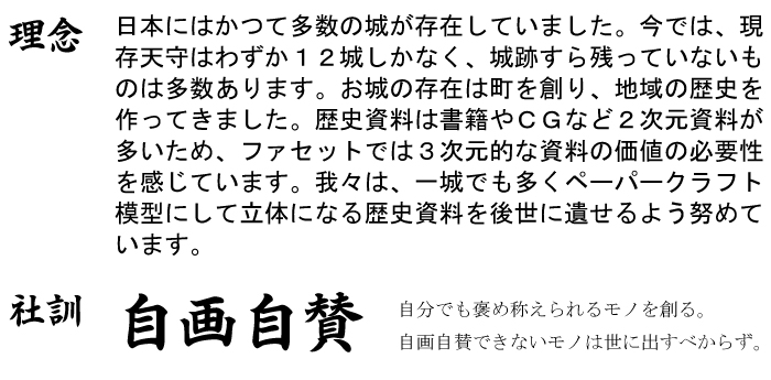| 代表者(総帥) | 石原 茂 お城紙模型作家、紙飛行機作家(見習い) |